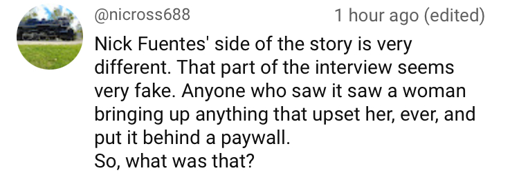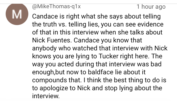 Candace, I mean this with love as your sis in Christ. Here’s some honest feedback: I think you shouldn’t have put the Nick Fuentes interview behind a paywall. You said your reason for not uploading it on YouTube was because THEY would censor anything featuring Nick Fuentes, but when other content creators uploaded your interview sharing honest critique, it’s YOU and not YouTube throwing CopyRite strikes making sure this interview doesn’t make its way on the platform. It just looks suspect.