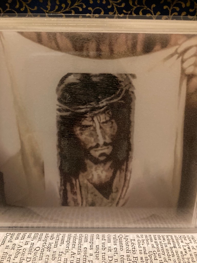 I didn’t look back. I entered Carmel knowing full well, that Pope Benedict was the Pope and that Bergoglio must be trodden under foot 🦶🏻 as Pope Innocent III said we must do to heretics. I prayed for Pope Benedict ALONE at the Te Igitur of the Mass, and the day that solidified my desire to pray for Pope Benedict even more was when someone left a holy card through the cloister turn of him. A sister left it in the kitchen area, and I randomly decided to flip it over.
