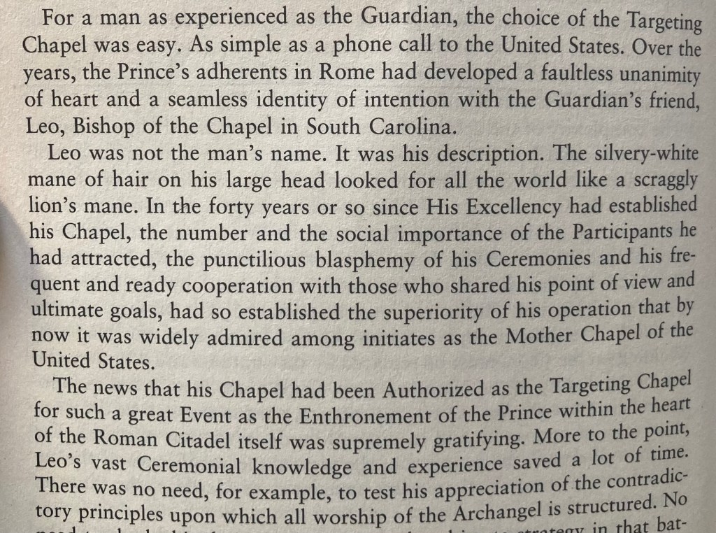 Again, don’t tell me I am delusional. One last correlation I would like to point out is Malachi’s choice of the name “LEO” for the description of the main man officiating the enthronement of Lucifer: “Leo was not the man’s name. it was his description.” That is haunting, as the very man wearing white, now, parading around as one who holds the keys of Peter took that name: